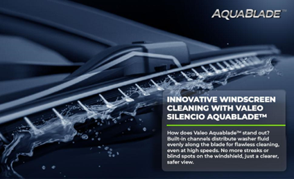 Pro vybrané modely automobilů zahrnuje řada Valeo Silencio™ také patentovanou technologii Valeo AquaBlade® – systém rozprašující kapalinu do ostřikovačů přímo přes stěrač. To zajišťuje: