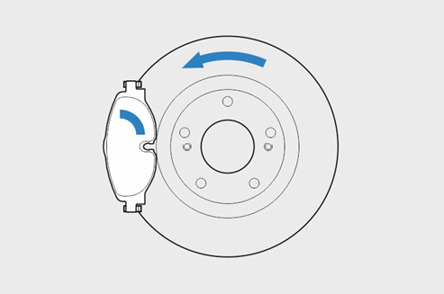 Směr přenosu brzdné síly mezi destičkou a kotoučem je dán konstrukcí brzdy. Není-li na